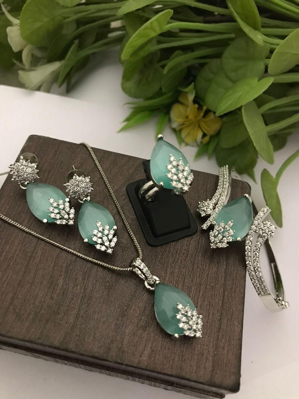 Includes necklace, earrings, ring, and bracelet for a complete set