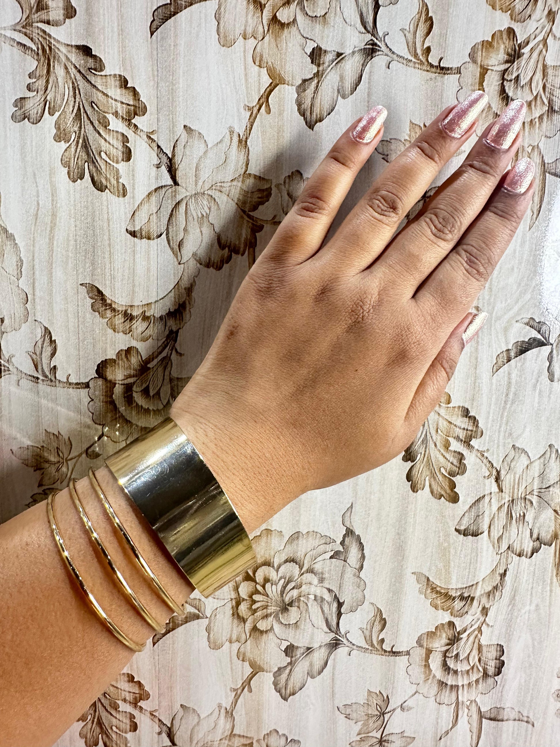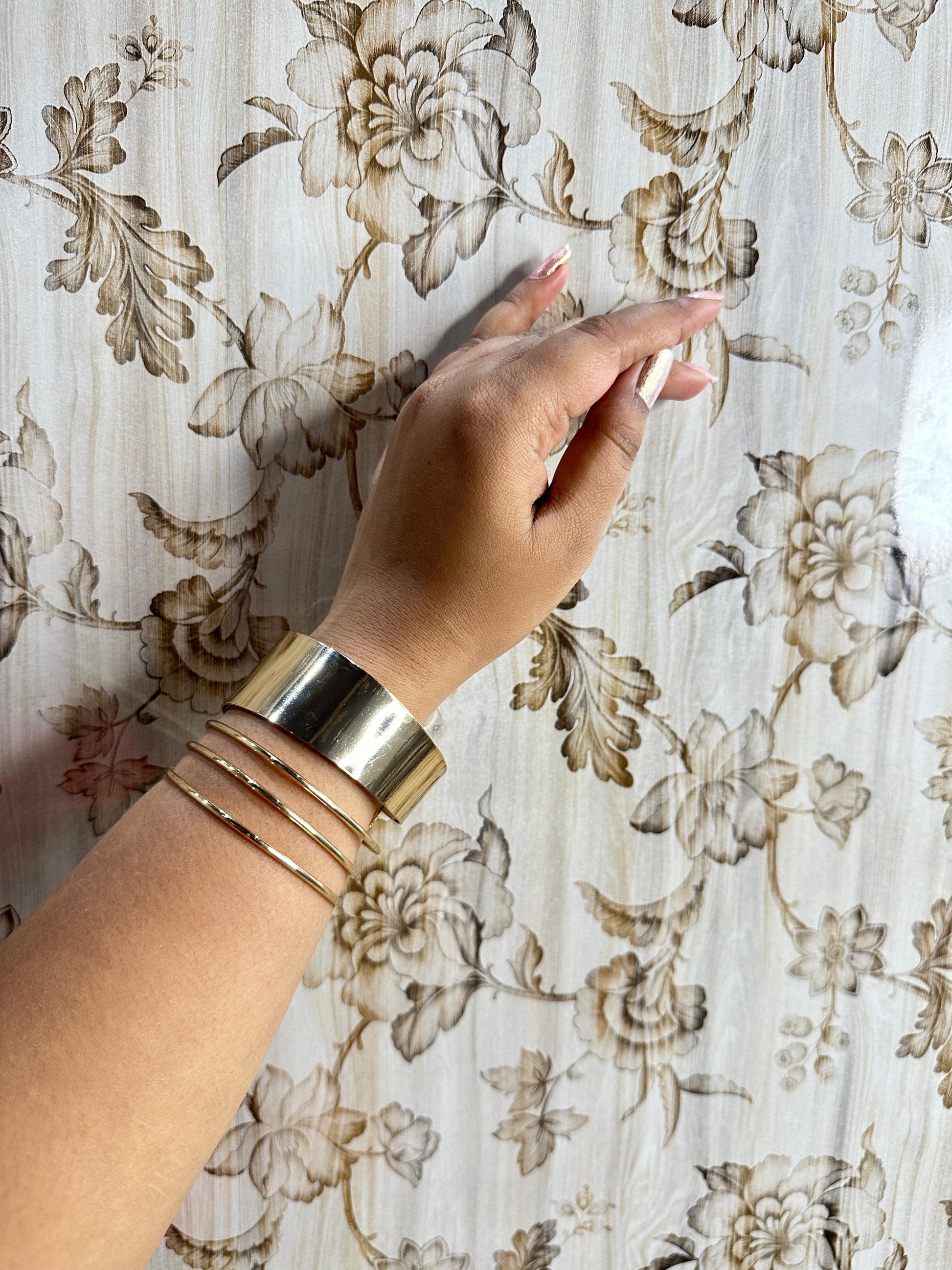This chic and contemporary spiral cuff bracelet is designed to add a touch of sophistication to any outfit. Crafted with a sleek golden finish, it offers a modern twist with its open spiral design, making it perfect for both casual and formal occasions.
