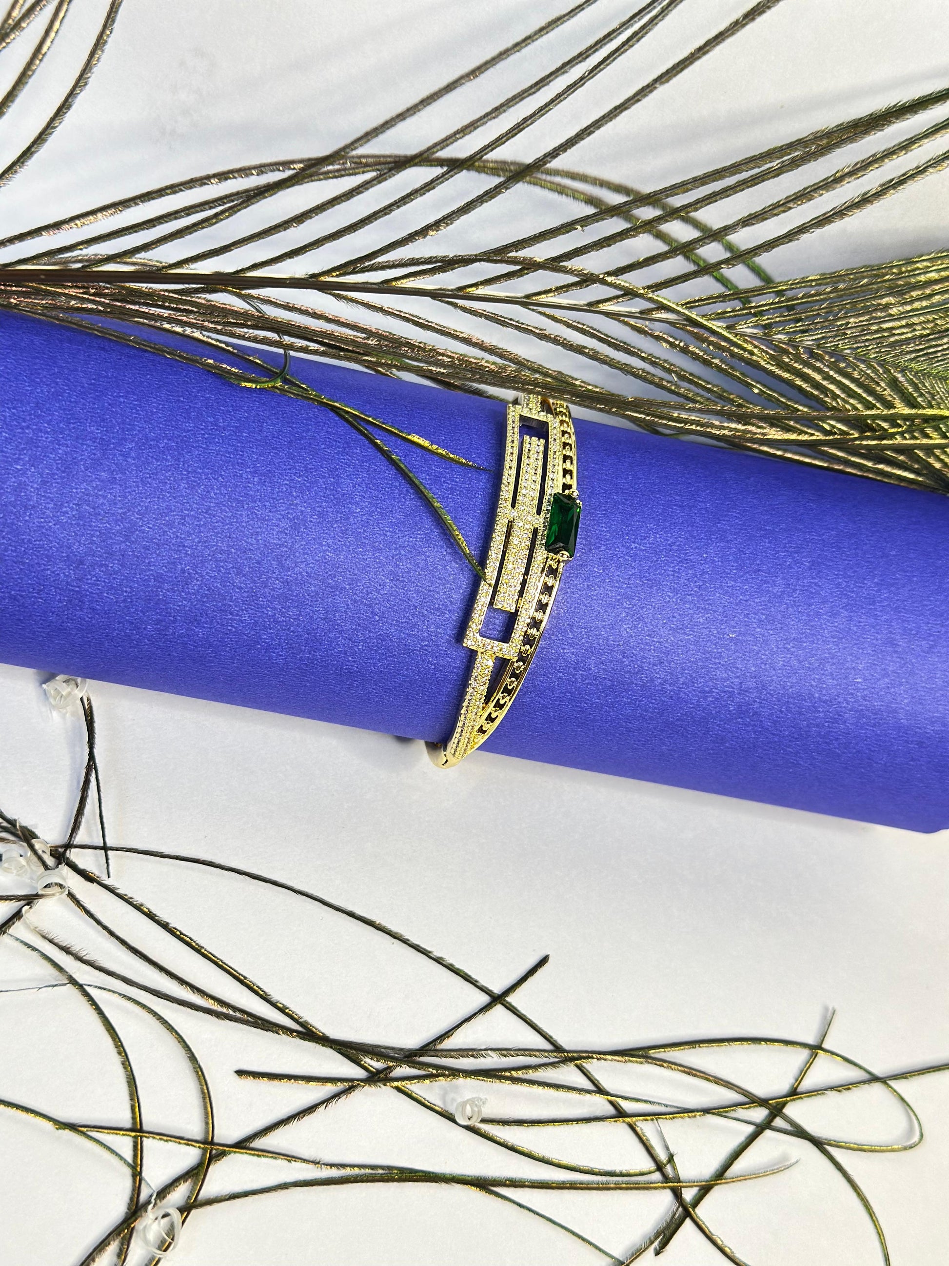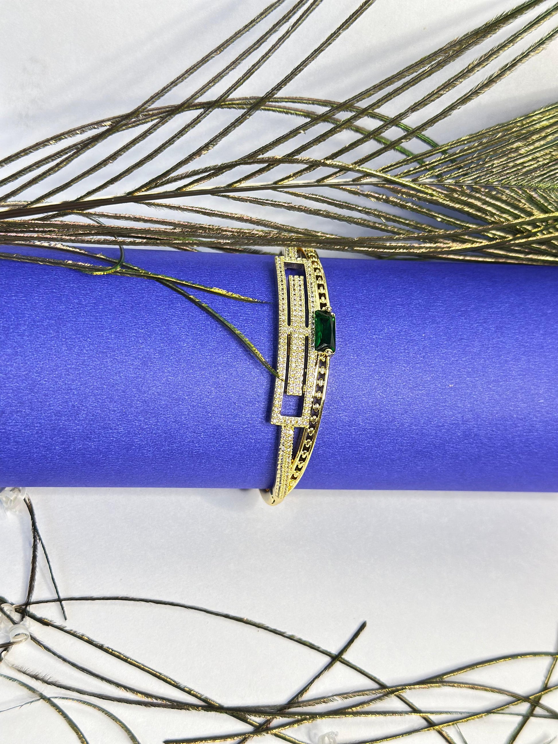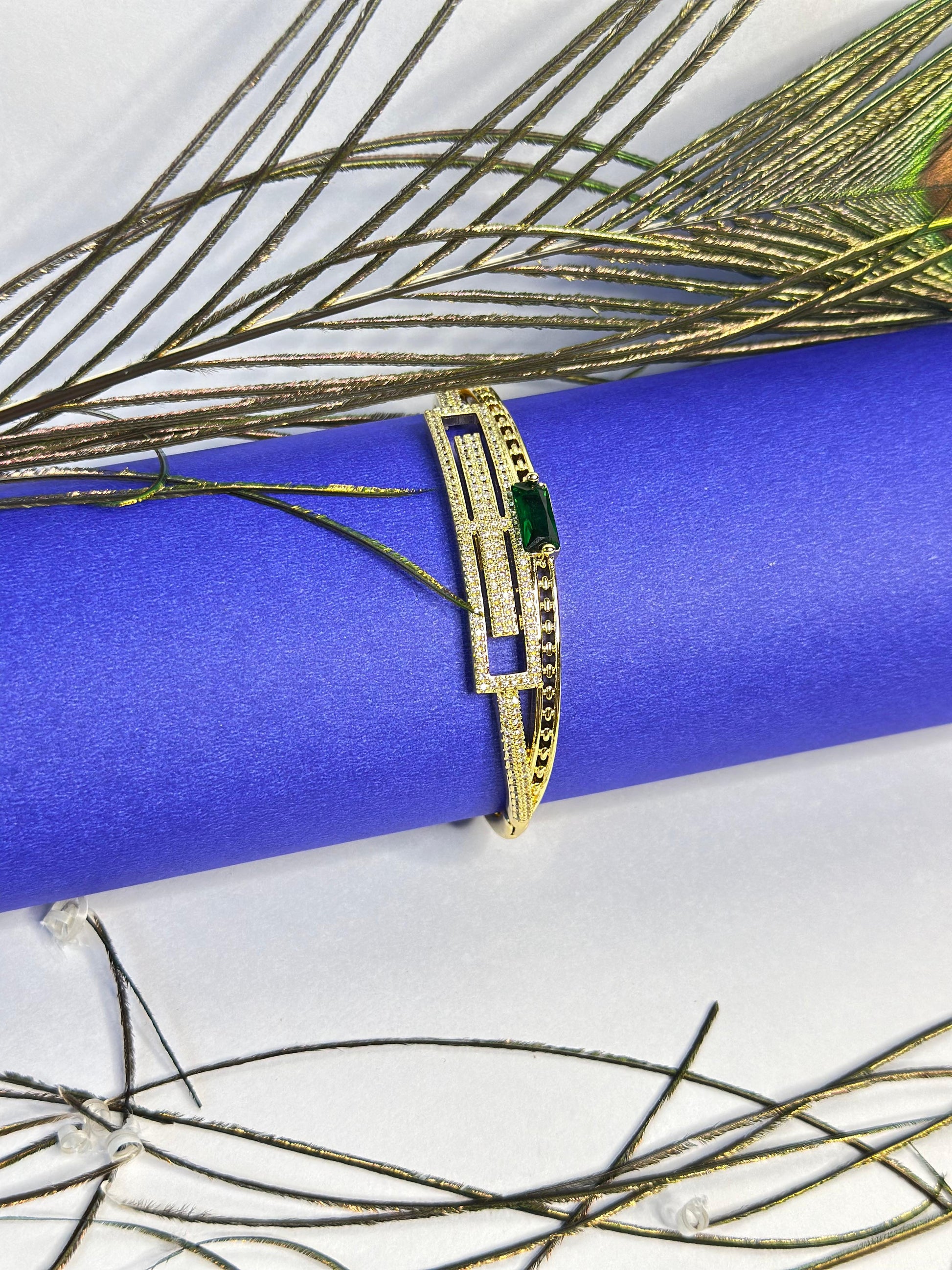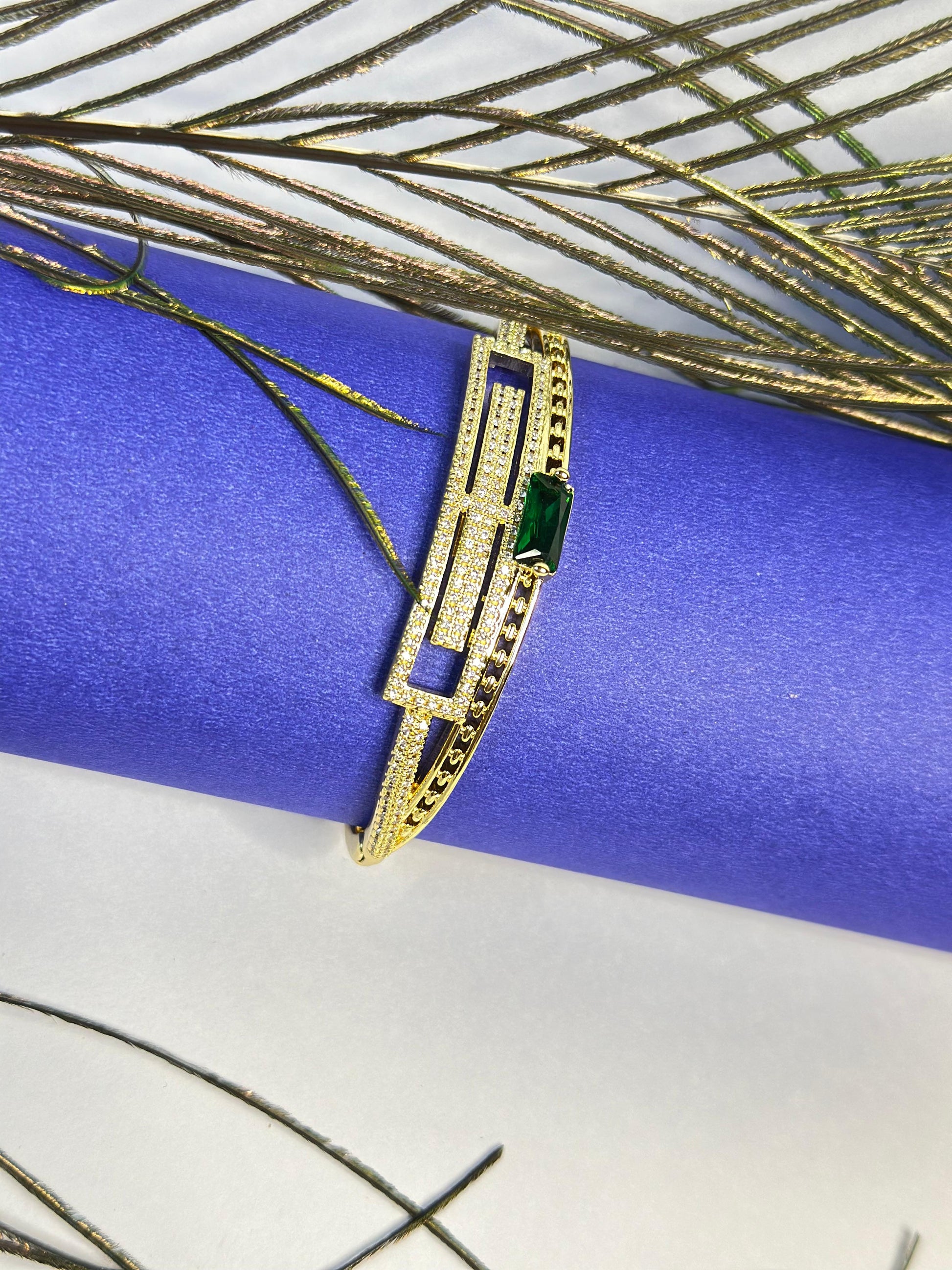 Elevate your style with this exquisite anti-tarnish bracelet, featuring a modern geometric design adorned with a vibrant green stone and shimmering cubic embellishments. Crafted with premium-quality materials, this bracelet ensures long-lasting shine and sophistication, perfect for both casual and festive occasions.