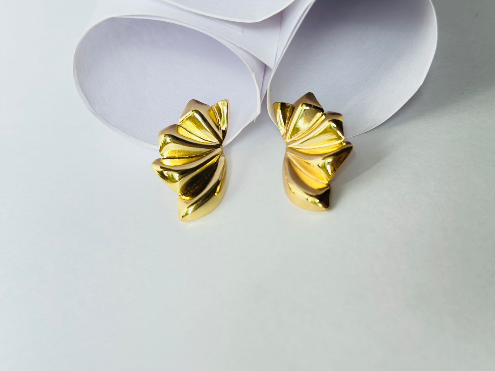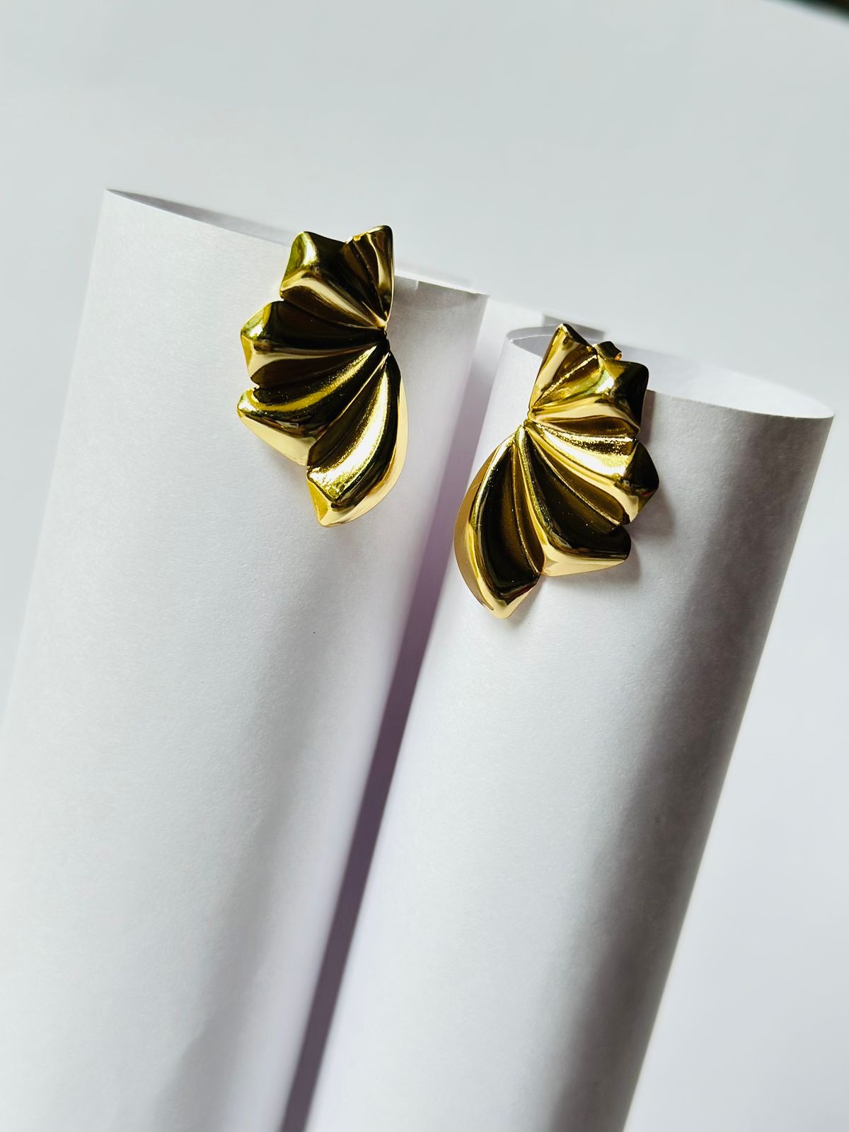 Bring a radiant touch of nature-inspired elegance to your style with these Golden Petal Shell Earrings. Crafted in a sleek petal-shell design with a polished gold-tone finish, these earrings are perfect for making a bold yet sophisticated statement. Their sculpted texture reflects light beautifully, making them an eye-catching choice for festive wear, parties, or even everyday glam. A blend of modern artistry and timeless charm, these studs are a versatile addition to any jewelry collection.