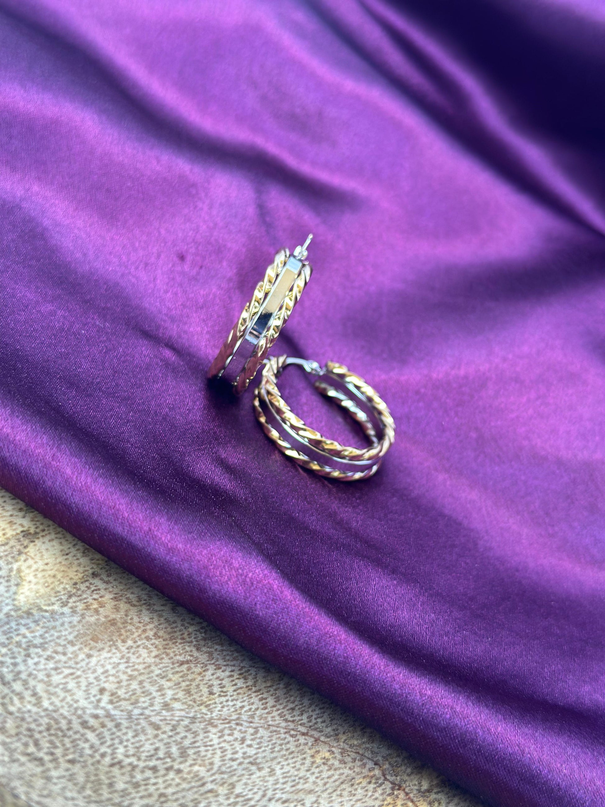 These elegant hoop earrings feature a dual twisted design in a high-polish golden finish, adding a touch of sophistication to your look. Lightweight and versatile, they are perfect for both daily wear and special occasions.