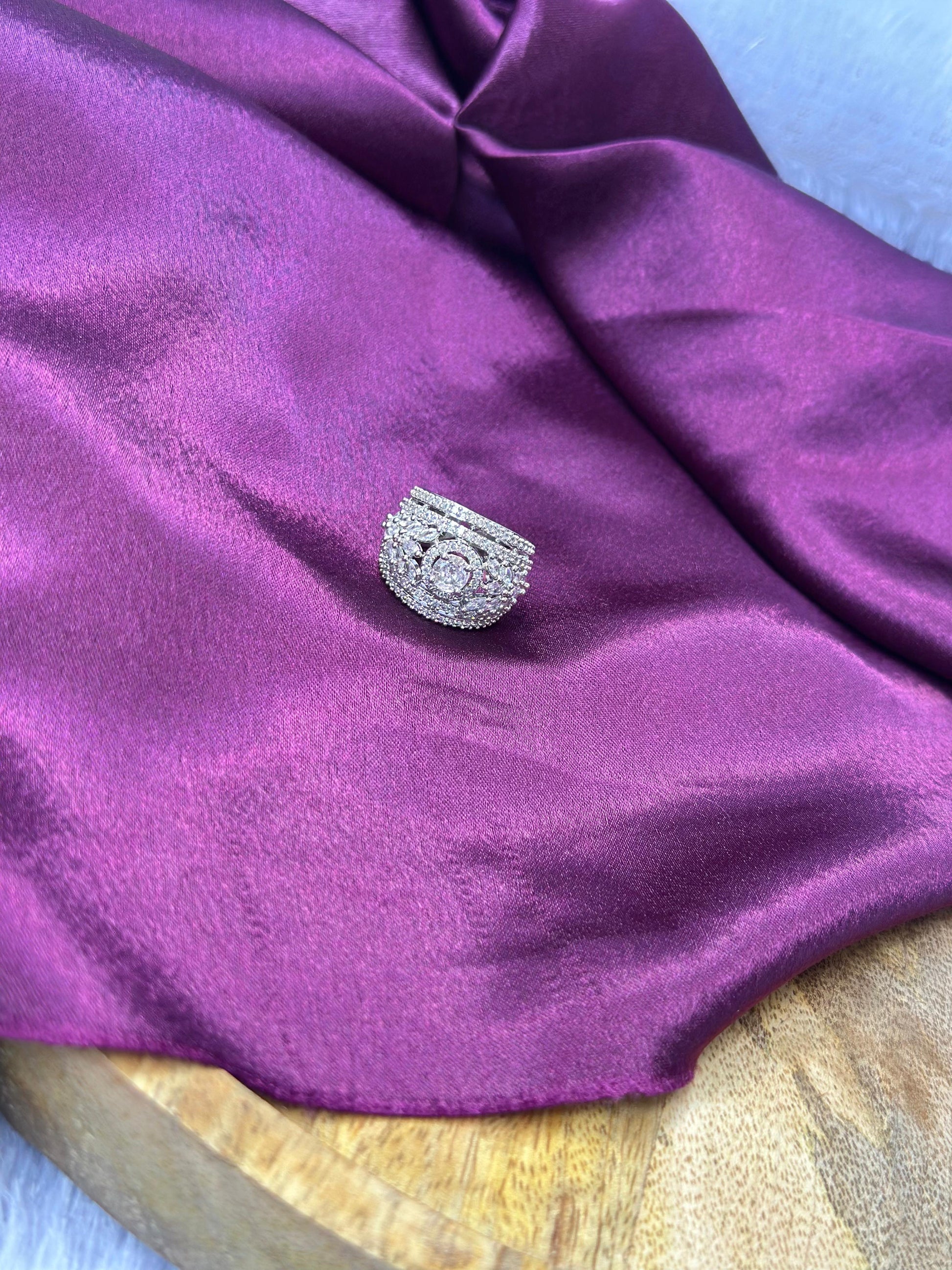 This statement cocktail ring is designed to add a glamorous sparkle to any look. Featuring a dazzling cluster of shimmering crystals set in multiple rows, it radiates elegance and luxury. Perfect for parties, weddings, or special occasions, this ring is a true showstopper that highlights your bold and chic style.