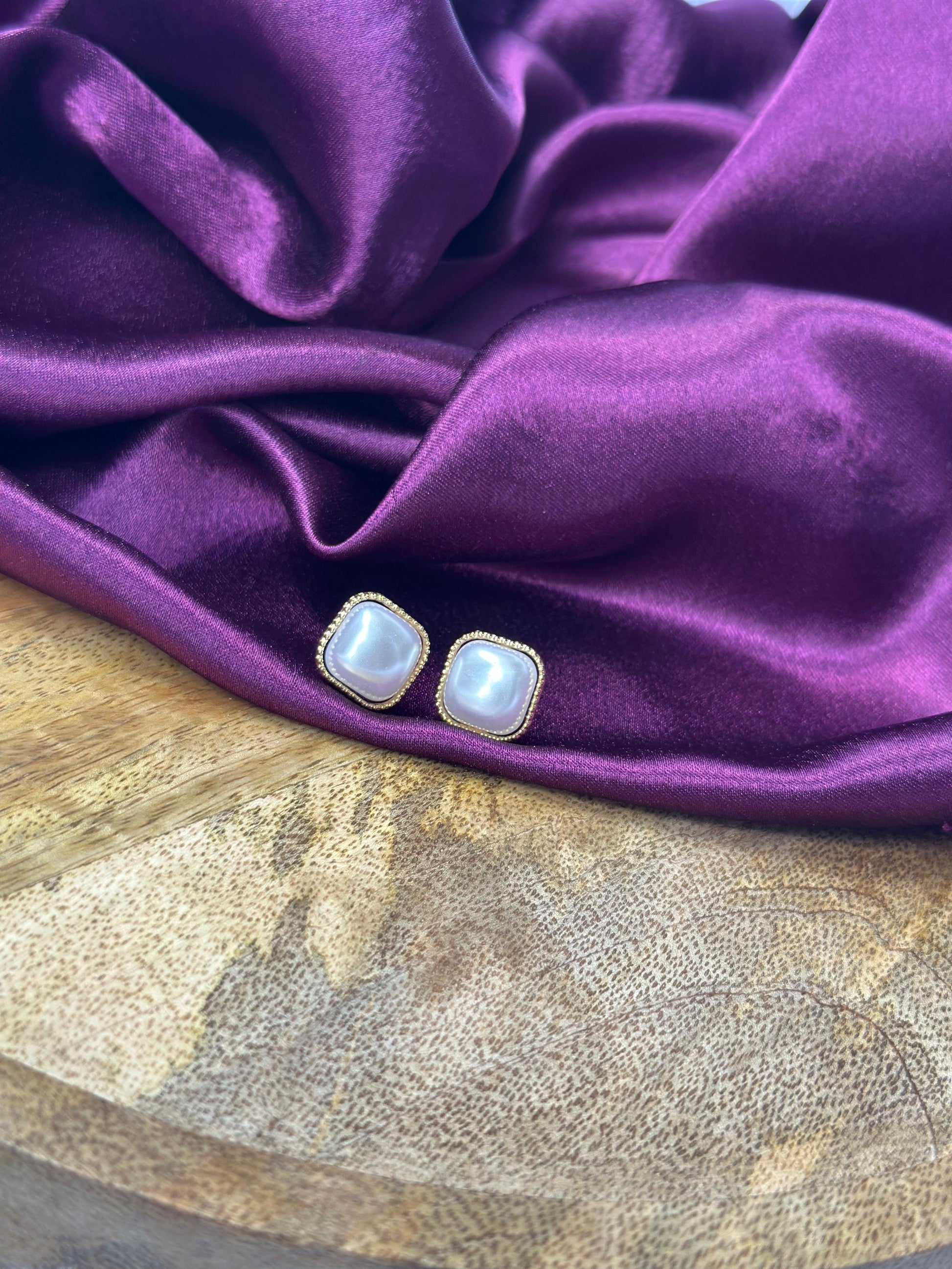 These stud earrings feature a classic square design with lustrous pearl centers, delicately bordered with a golden frame. Perfect for both traditional and modern looks, they add sophistication and charm to any outfit. Crafted with care, they are lightweight, durable, and ideal for daily wear or special occasions.