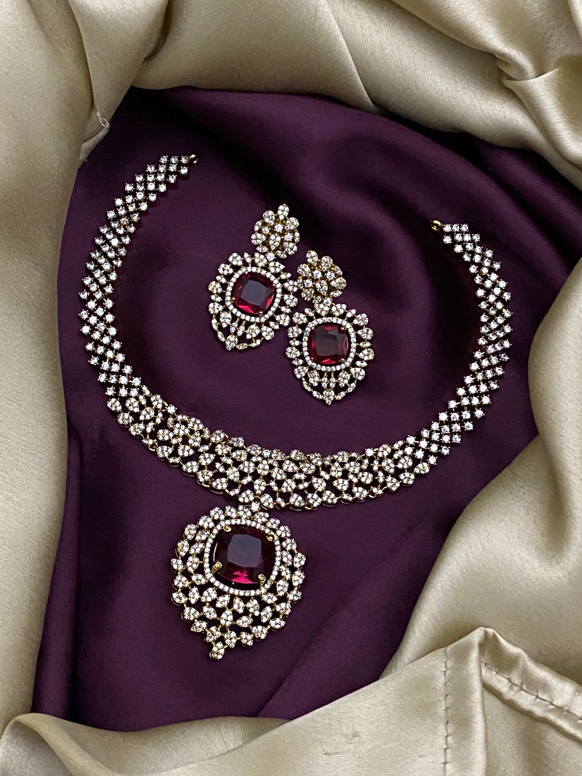 This luxurious bridal jewelry set features a stunning emerald-green centerpiece surrounded by shimmering crystals. Designed to add a royal touch to weddings and festive occasions, the set includes a statement necklace and matching earrings. The intricate craftsmanship blends traditional artistry with modern elegance, creating a timeless treasure for your special moments.