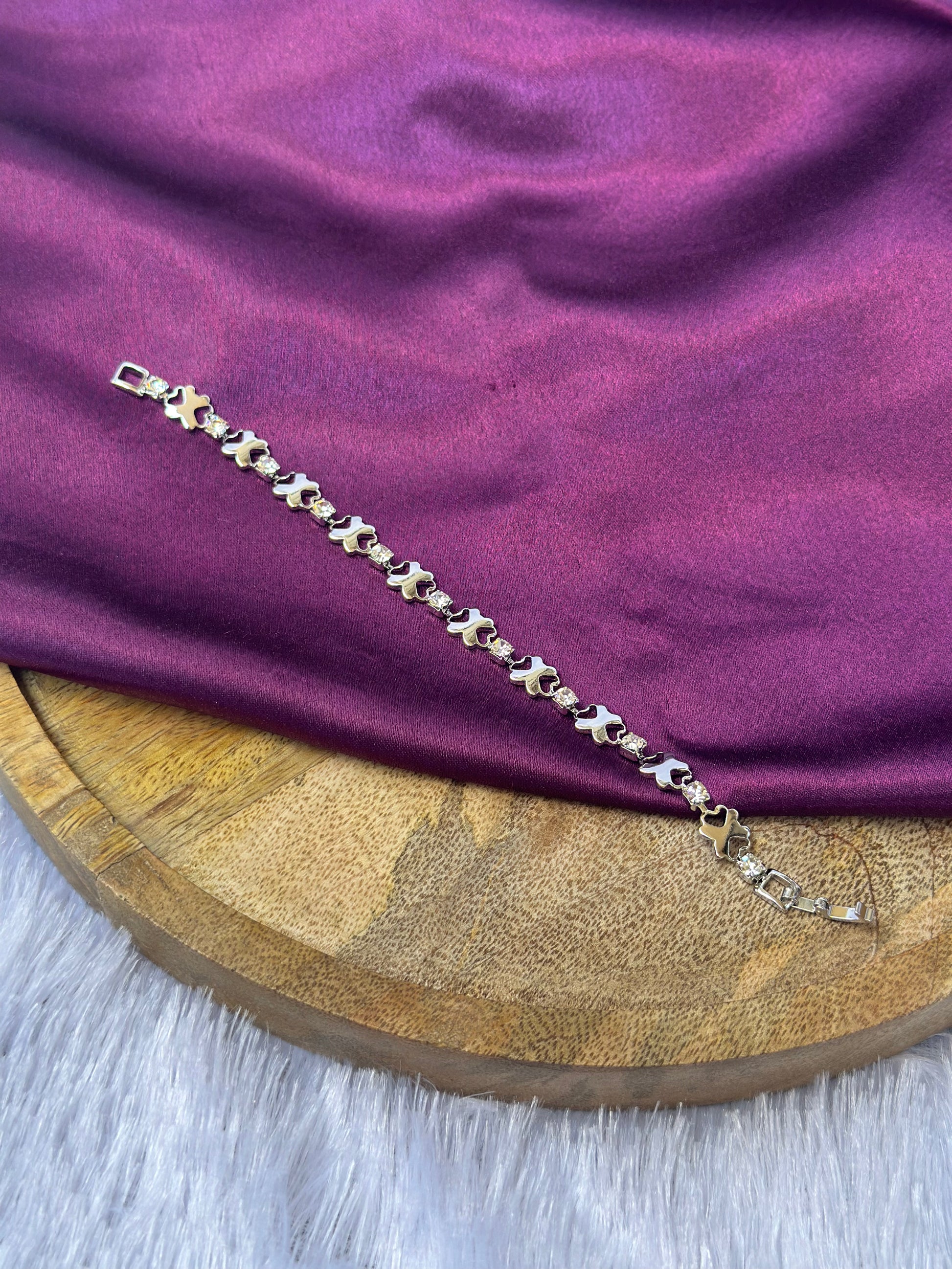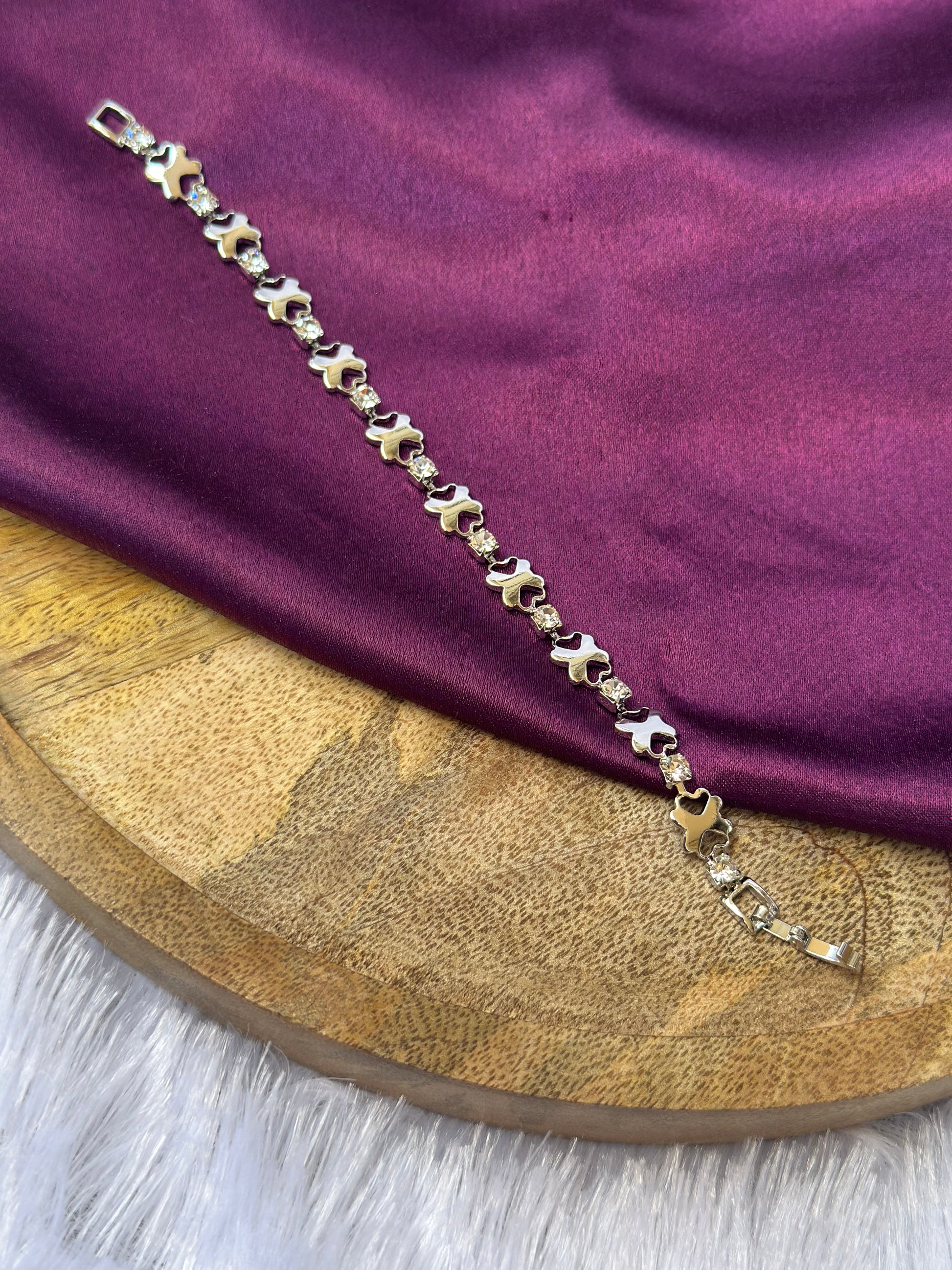 The Starry Bracelet is a delicate silver-toned accessory featuring alternating heart-shaped motifs and sparkling stones. Its elegant yet minimal design makes it perfect for everyday wear as well as special occasions. Lightweight, comfortable, and stylish, this bracelet adds a graceful shine to your wrist.